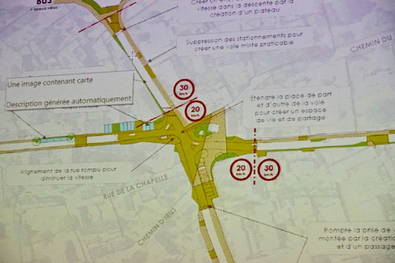 Le bureau d’études a formalisé un projet qui se compose de plans, de coupes de voiries et d’exemples d’aménagements. C’est ce travail qui a été rendu public à La Lucarne le 25 novembre 2021