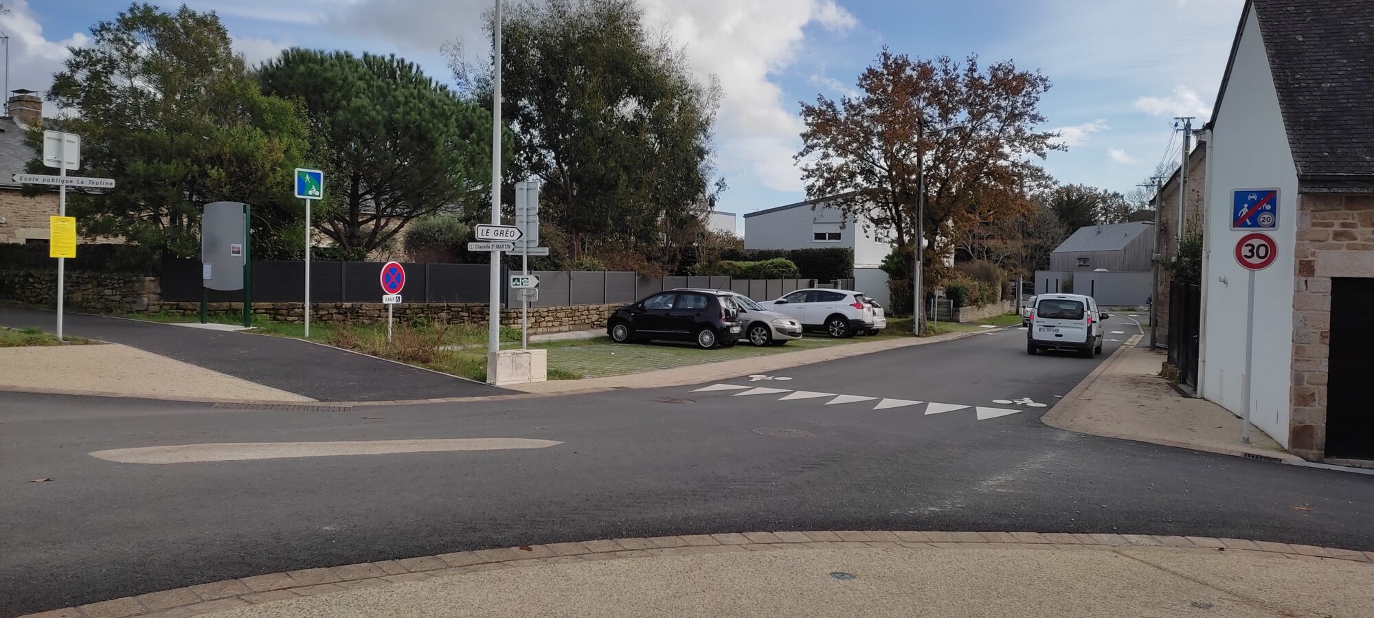 Le cœur de bourg est dorénavant une zone partagée limitée à 20 km/heure, avec une priorité aux piétons, le reste du quartier restant limité à 30 à km/heure.